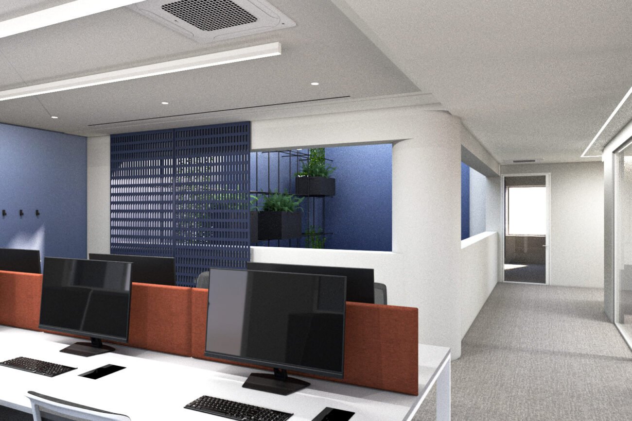 Comprehensive renovation of a 1,100 sq.m., four-storey office building, transforming it into a modern, inspiring, and highly functional workplace featuring offices, collaborative common areas, and laboratories.