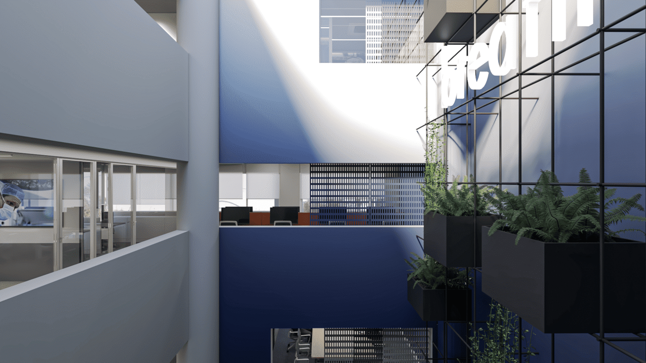 Comprehensive renovation of a 1,100 sq.m., four-storey office building, transforming it into a modern, inspiring, and highly functional workplace featuring offices, collaborative common areas, and laboratories.