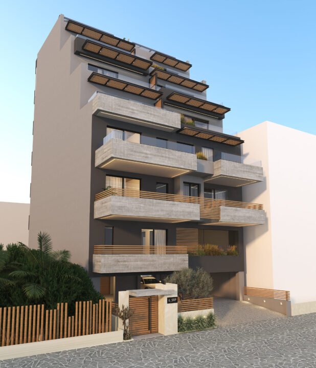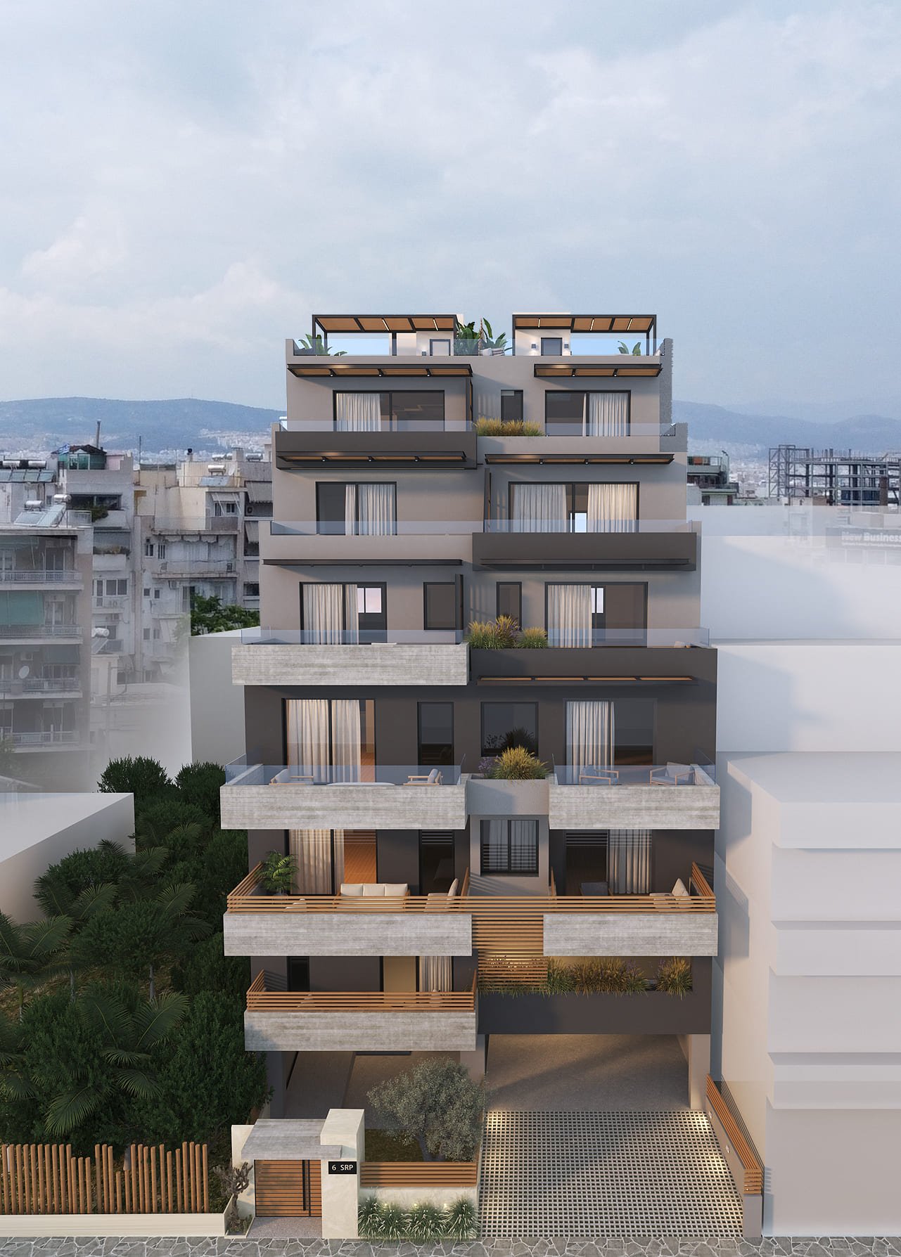 Development of a contemporary six-storey residential building in the Gkazi district of Athens, spanning 550 sq.m. Designed to meet energy efficiency class A+ standards, the property consists of 10 fully independent apartment units.