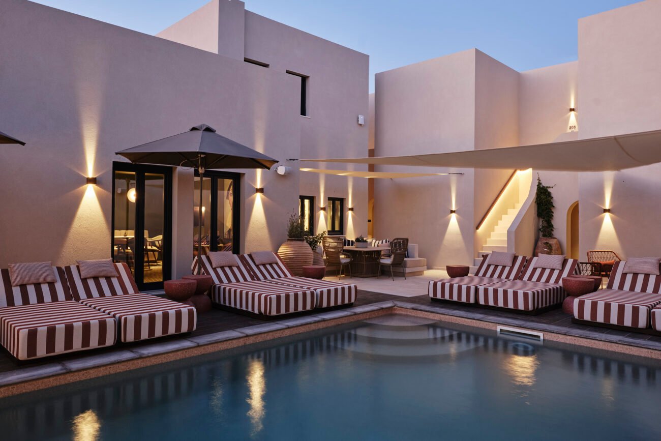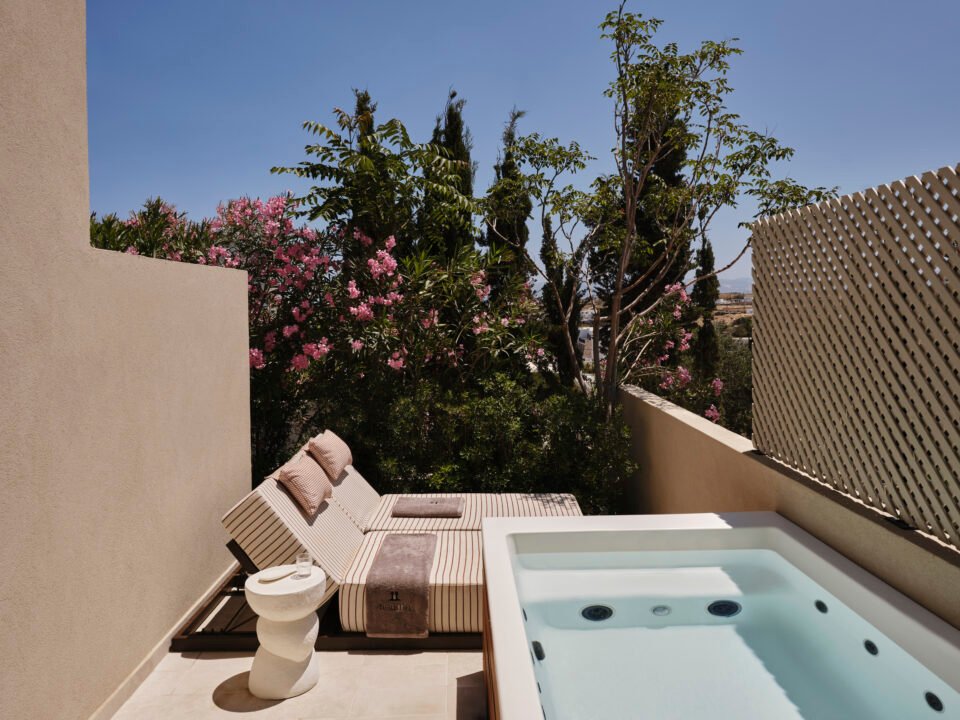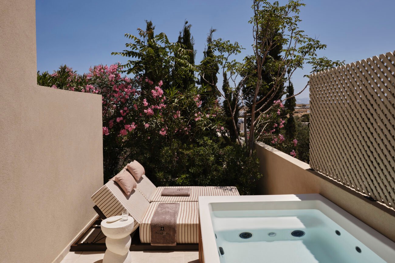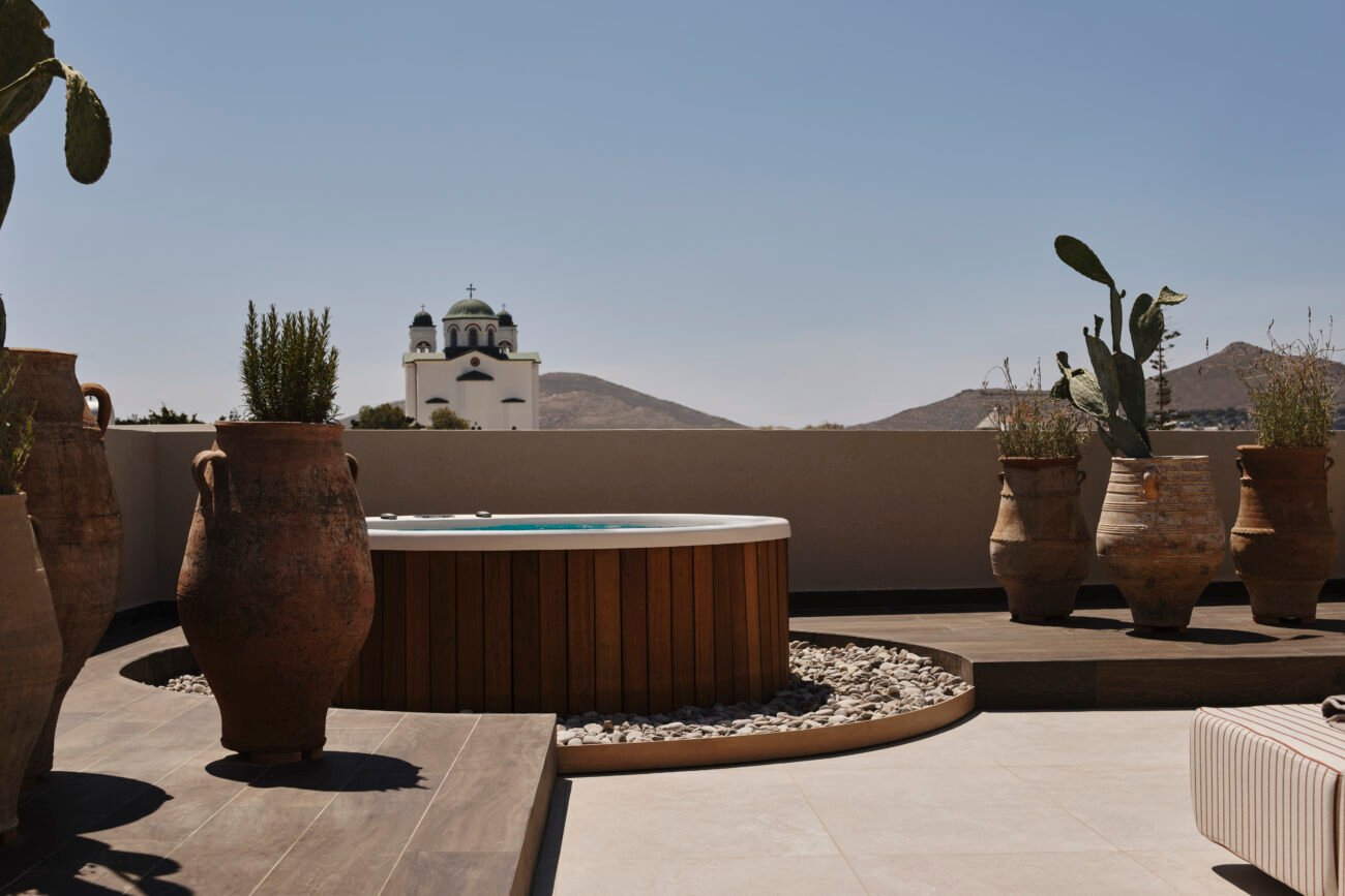 “A luxury hotel in the island of Paros. Nestled within a