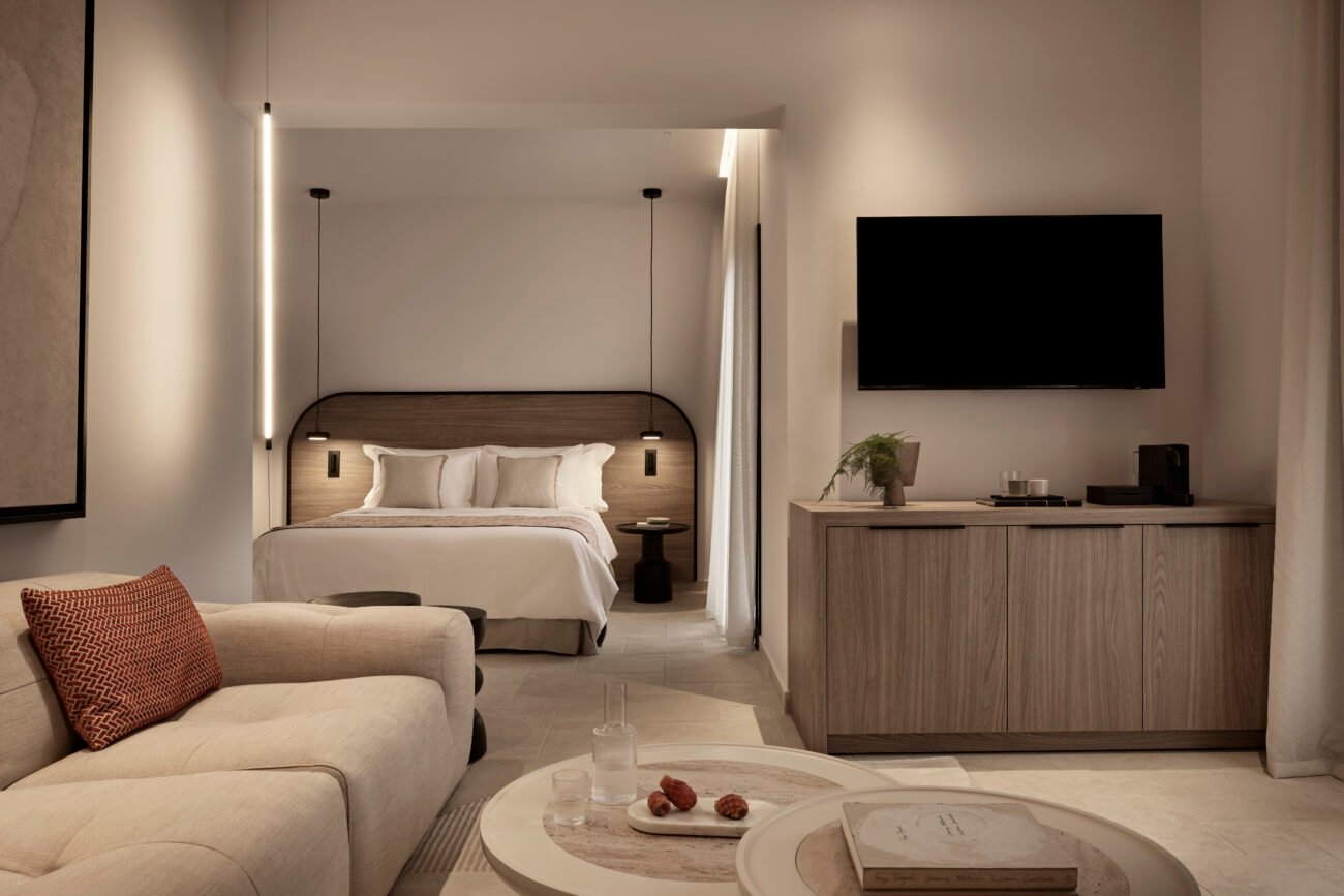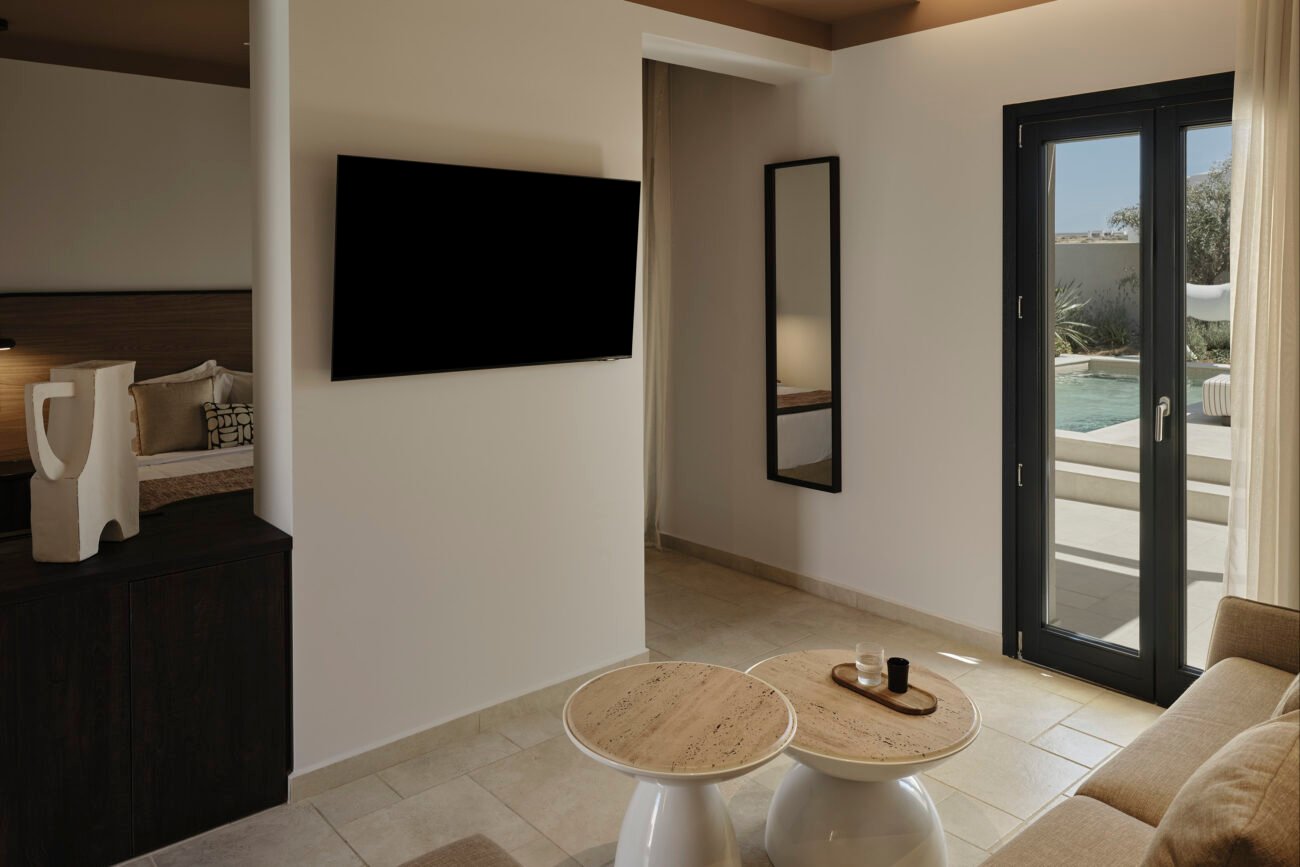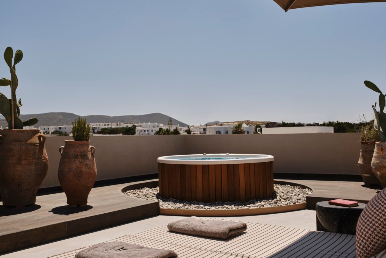 “A luxury hotel in the island of Paros. Nestled within a