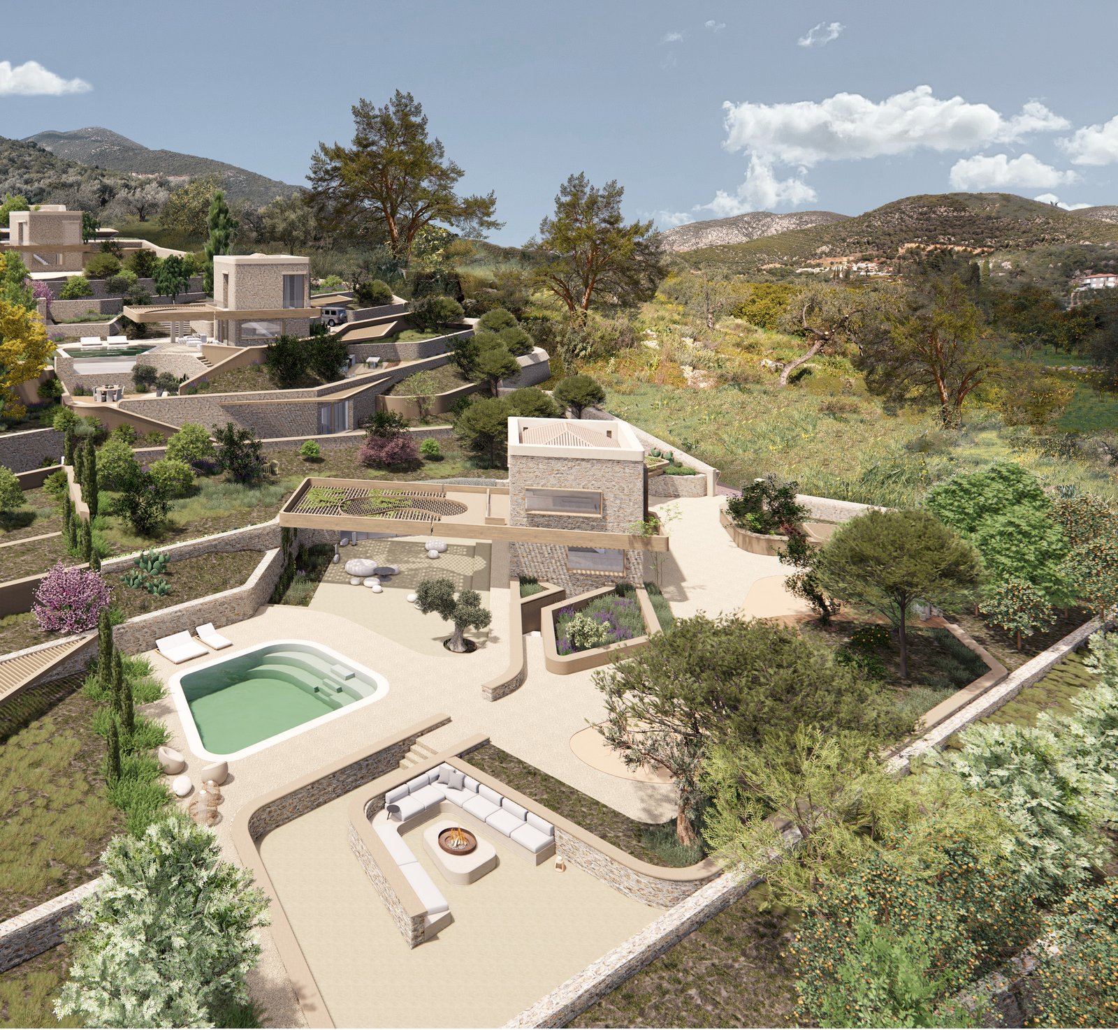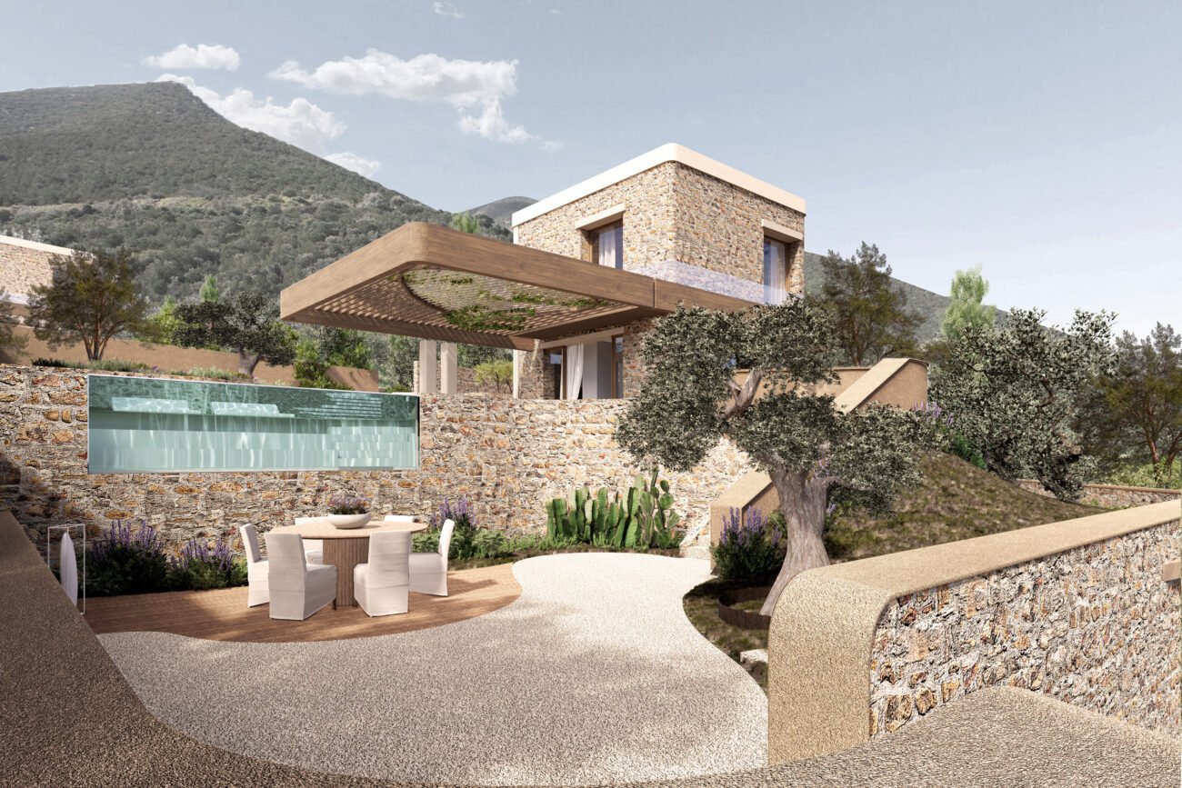 “Twenty four (24) luxurious villas in the area of Palaia Epidavro, offering breathtaking views of the Epidauros harbor. Nestled within a spacious 50.000 sq.m. area. Each house within this enchanting retreat has been meticulously crafted, featuring thoughtful design elements that seamlessly integrate MEP services with nature. By prioritizing sustainability, these houses leave a minimal CO2 footprint while effectively managing energy and water resources. This complex harmoniously blends into its surroundings, minimizing waste and maximizing the efficient utilization of resources. ’’